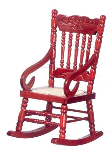 Dollhouse Miniature Mahogany Wooden Rocking Chair Wood Rocker For 1 Inch Scale 112 Doll House Walmart Com