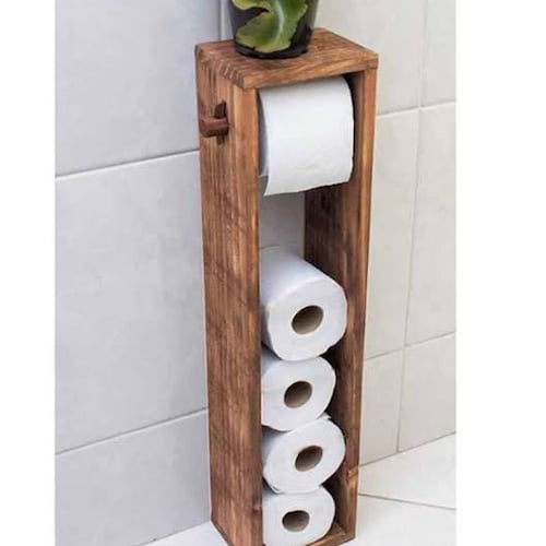 Wooden Toilet Paper Holder Free Standing Toilet Roll Stand Etsy